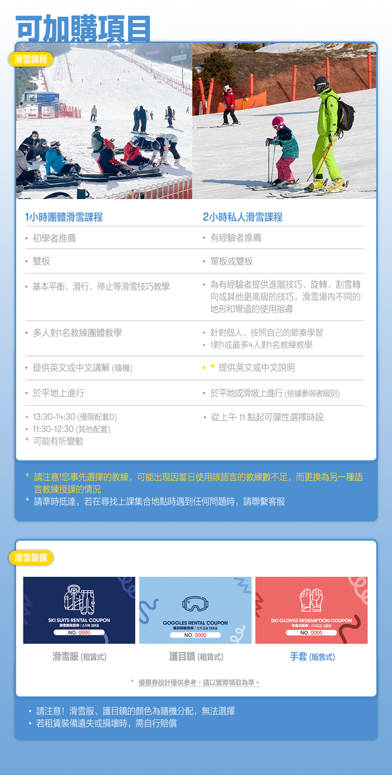 [D:提早出發] 冰雪王國 + 滑雪用具租借 + 移動步道(7小時)+ 接駁車